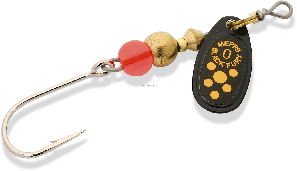 The Black Fury with a plain treble hook is one of the great all-time Mepps spinners. The special Black Fury blade spins closer to the body than the classic Aglia blade so it easily fishes shallow to mid-depths. Dressed and plain options. Very effective at Read more